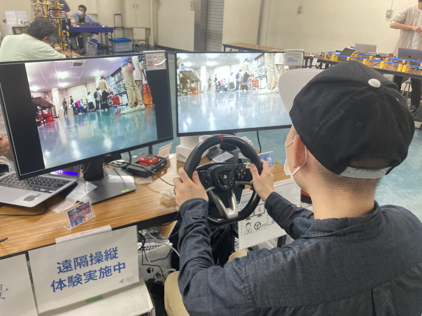 インターネットを介して沖縄ー東京間(約1600km)の映像伝送が61.2ms、ShunCarの遠隔操縦の実験を行いました。